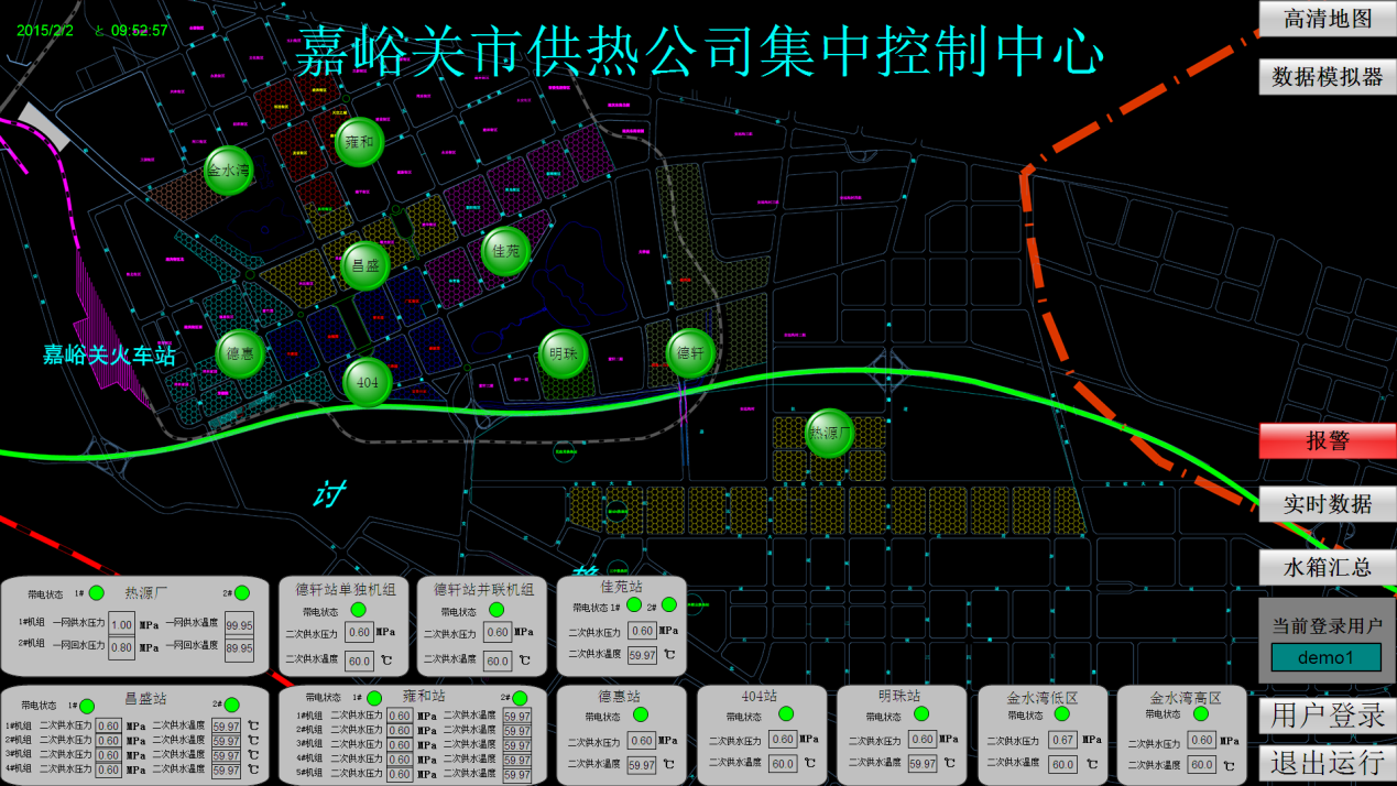 监控中心:以服务器、操作员站、工程师站、电视墙等硬件为主体,以监控软件为辅助,实现在集控室内远程管理热网系统及换热站。